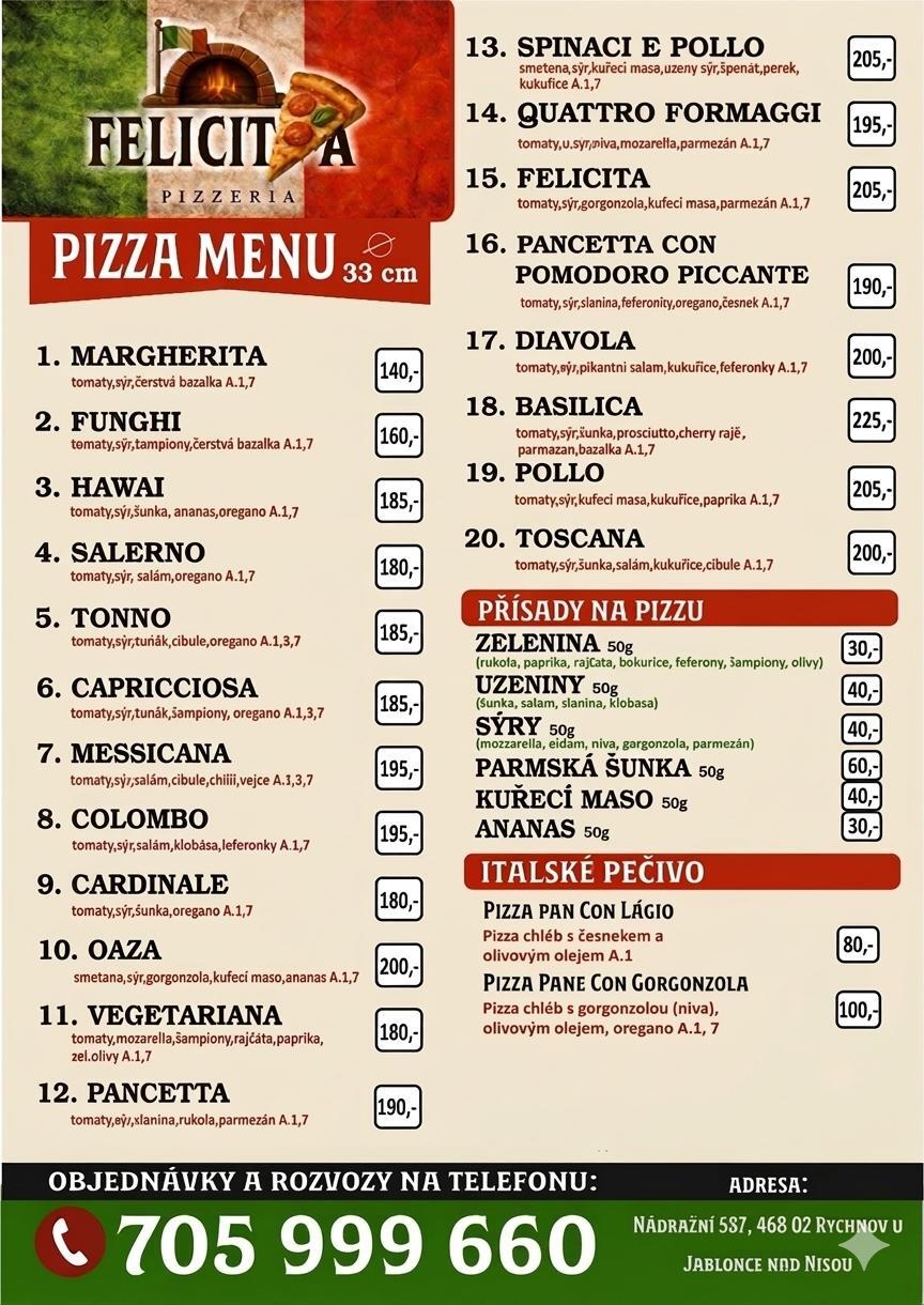 All at Pizzeria Felicita, extend a warm welcome to you in Rychnov u Jablonce nad Nisou! We invite you to enjoy our authentic italian cuisine. Our helpful servers are waiting to delight you with tasty lunch and dinner.